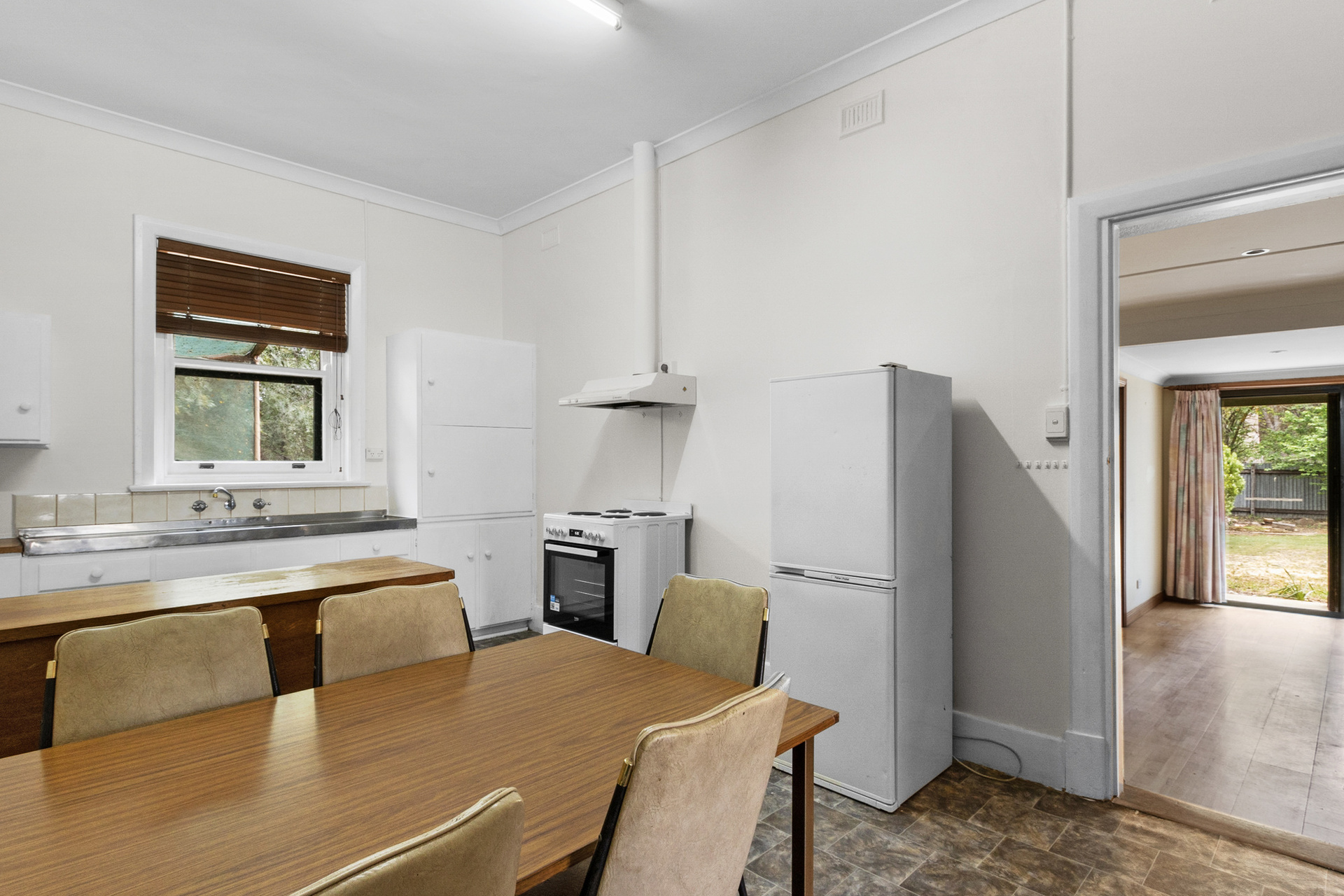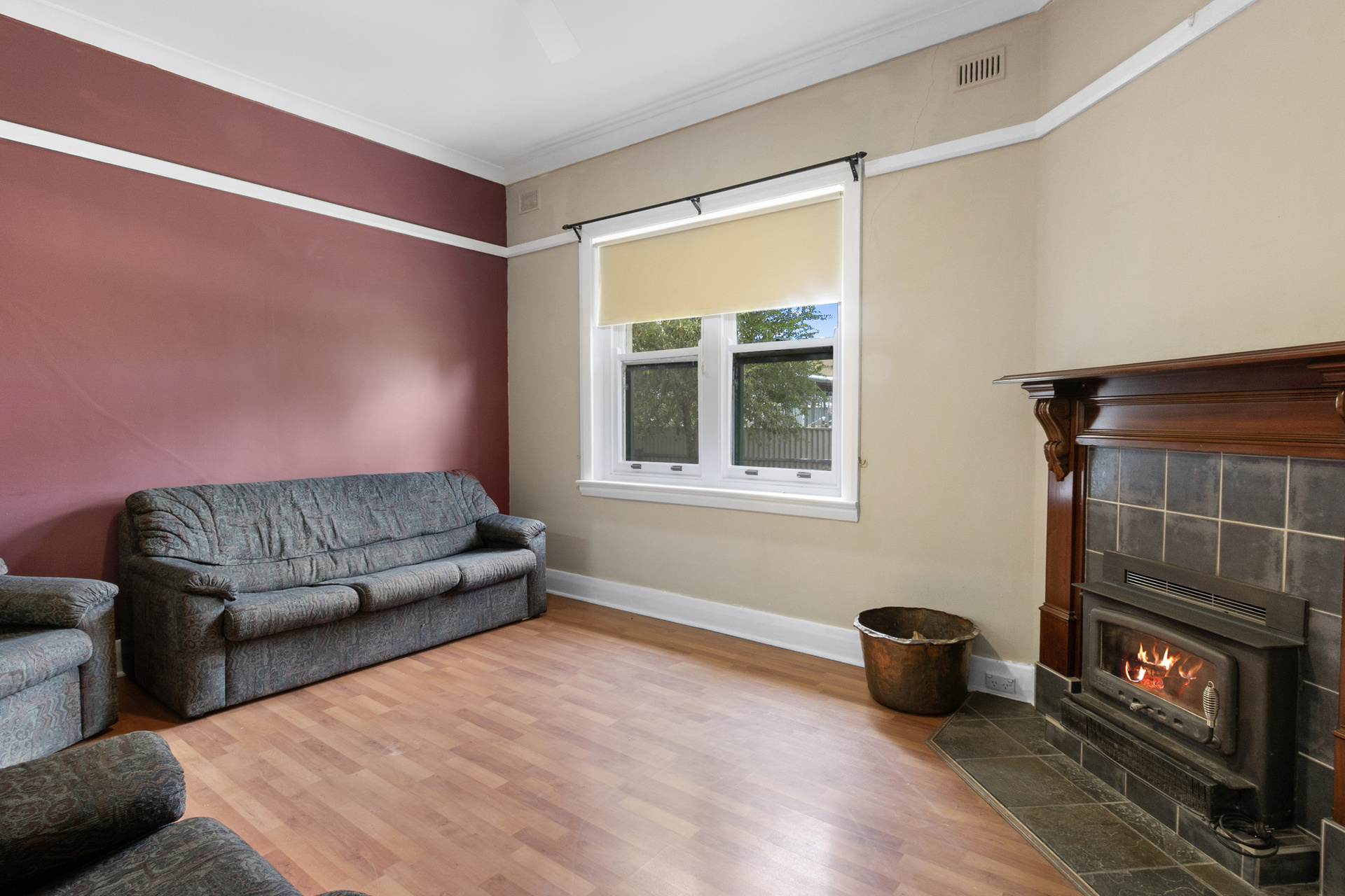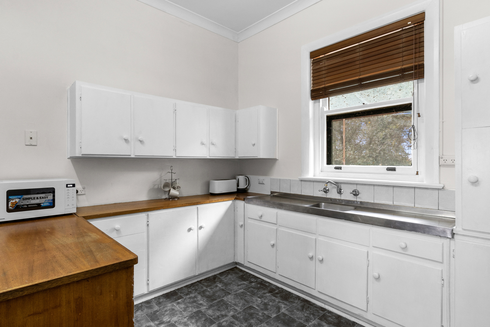The hallway flows into the family kitchen dining room with a large older style kitchen with plenty of cupboard and bench space and room for the largest of families to dine. There are two living areas, the main family loungeroom complete with a slow combustion heater that is accessed by both the kitchen diner and hallway.